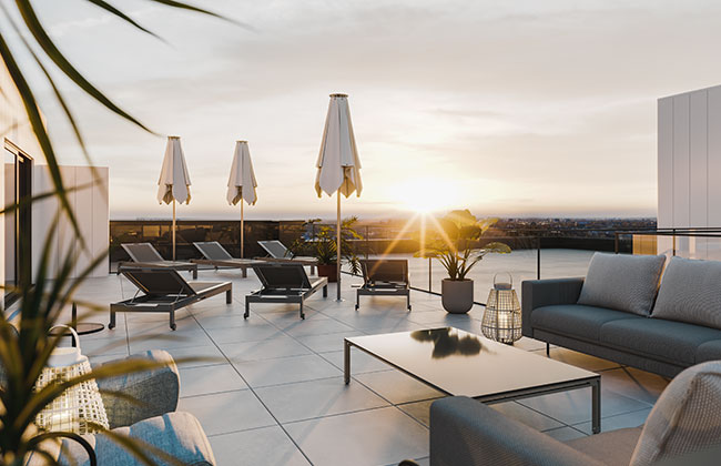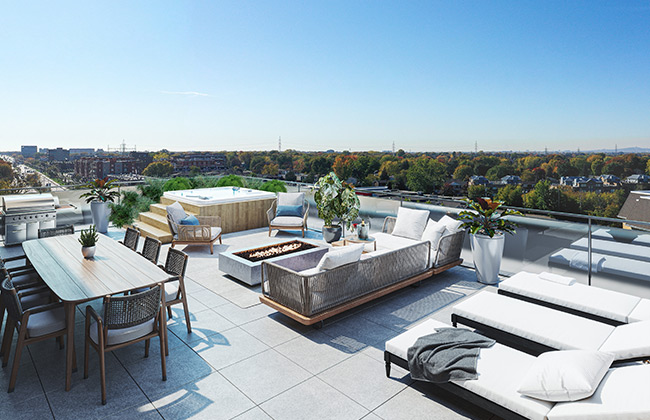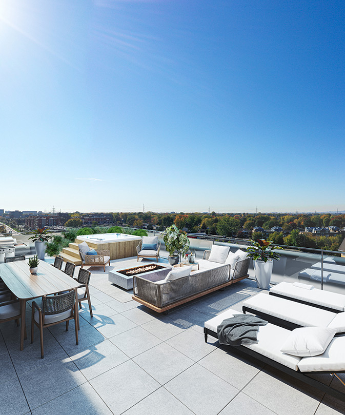 Figurant parmi les projets immobiliers les plus hauts de Dollard-des-Ormeaux, Baldwin Condos & Penthouses offre une vue panoramique incomparable. À partir de la terrasse sur le toit, admirez le coucher de soleil et profitez de moments entre amis ou en famille. Sans oublier la fenestration généreuse des penthouses, qui procure aux occupants de ces unités convoitées un spectacle à couper le souffle, en toute saison.