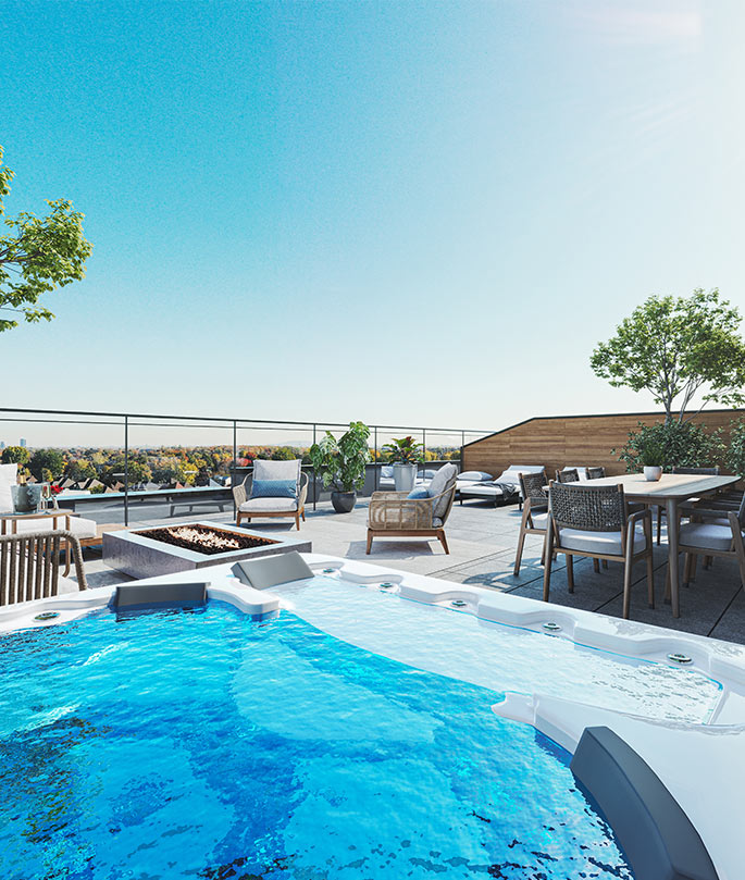Chaque condo ou penthouse jouit de son propre espace extérieur privé grâce à l’aménagement de balcons intimes et de vastes terrasses. Stylés et modernes, les intérieurs se distinguent par un design intemporel et des finitions soigneusement sélectionnées. Dans les multiples aires communes, le même souci de détail, les espaces invitant tantôt à la détente, tantôt à la rencontre.