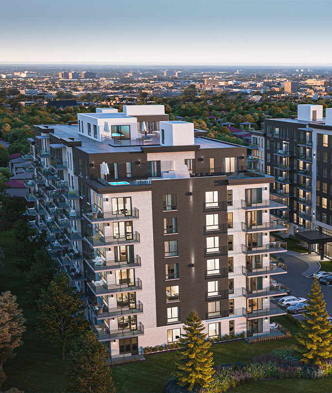 Harmonieusement intégré à la trame initiale du développement et à la suite du grand succès de la Phase 1, Baldwin Condos & Penthouses propose, avec sa Phase 2, un milieu de vie paisible à proximité des services les plus recherchés. Stratégiquement situés près de la future station du REM, ces condos à Dollard-des-Ormeaux vous donnent accès à tous les plaisirs de la ville, en retrait de l’effervescence urbaine.
