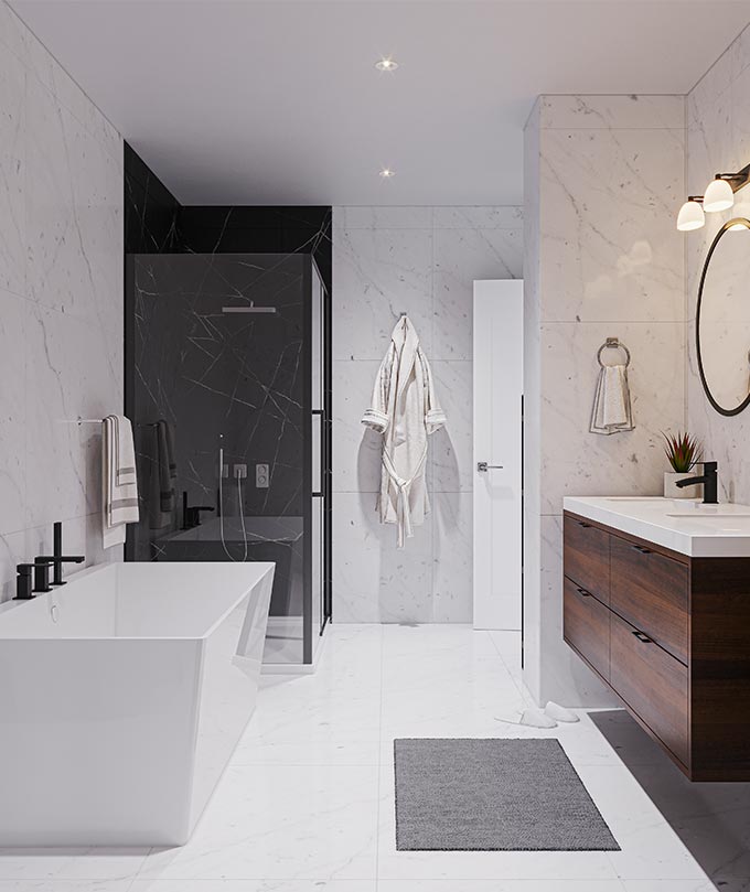 D’ allure contemporaine et raffinée, les condos et penthouses du projet Baldwin ont été pensés pour laisser place aux vrais moments du quotidien. Des cuisines animées où il fait bon recevoir et se réunir, des espaces destinés au travail et aux loisirs, une aire de vie à l’ambiance feutrée et propice à la relaxation ainsi qu’une fenestration généreuse qui procure la luminosité naturelle tant convoitée. Un lieu à habiter pleinement.