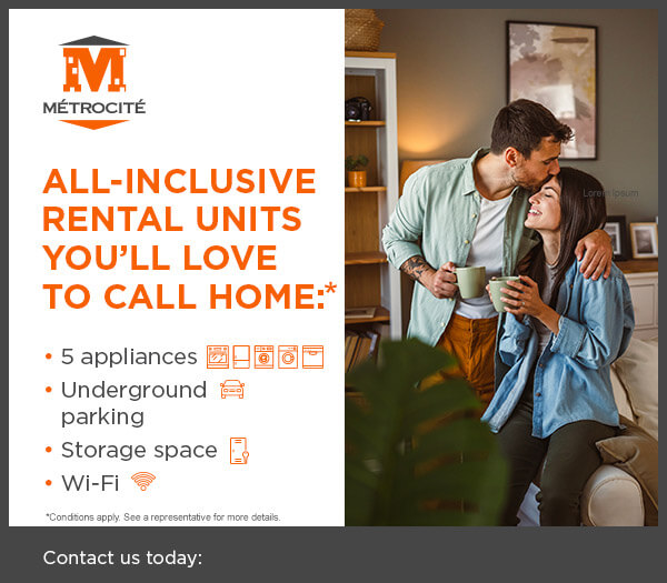 Logements tout inclus où il fait bon vivre : 5 électros, stationnement souterrain, casier et Wi-Fi.