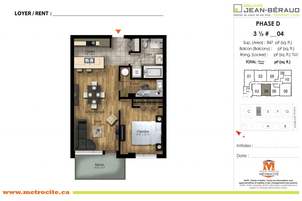 - Type d'unité : 3 1/2 Non meublé